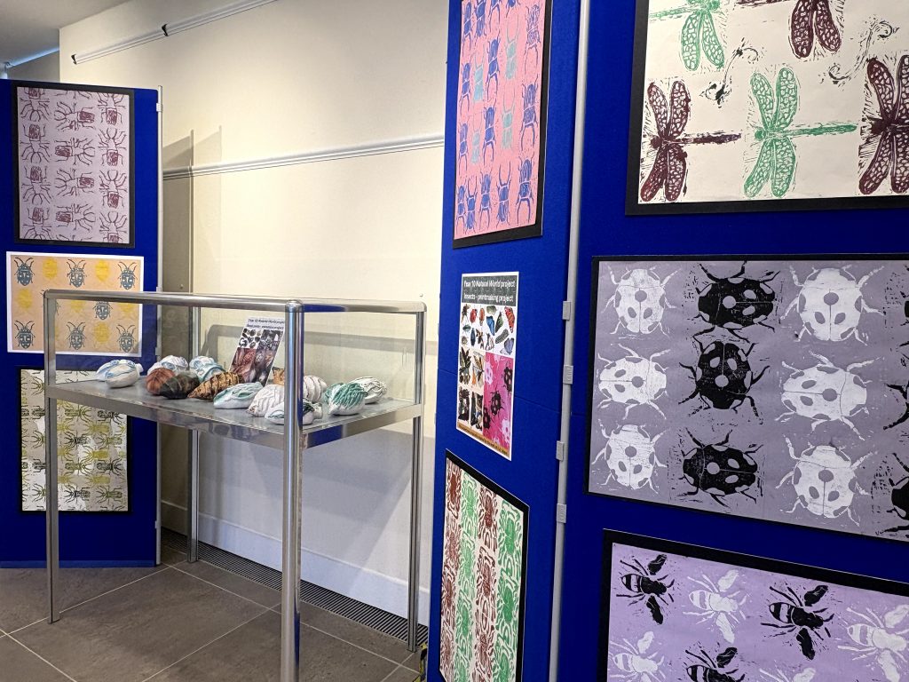 Next to this you will find some repeat prints and ceramic pieces by Year 10 students inspired by insects, seed pods, and the artists E.A. Séguy and Alice Ballard.